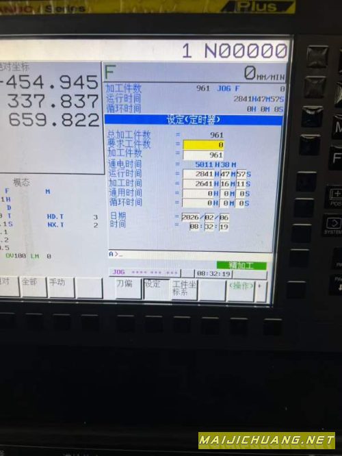纽威1525数控龙门,工作台2600/1500mm,门宽1800mm,门高1370mm,BT50主轴油冷,三轴行程:x/y/z,2700/1700/800mm,配有24把机械手刀库,法纳克PULs系统。